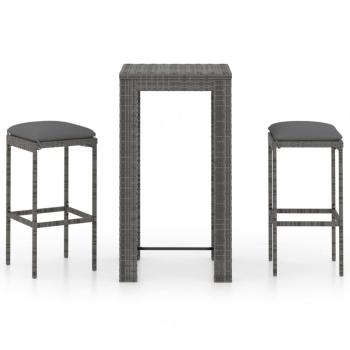 - Barové stoličky s poduškami 3 ks sivé polyratan, 313444