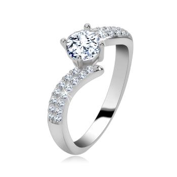 Zásnubný strieborný 925 prsteň - číry zirkón v strede, zirkónové ramená - Veľkosť: 52 mm