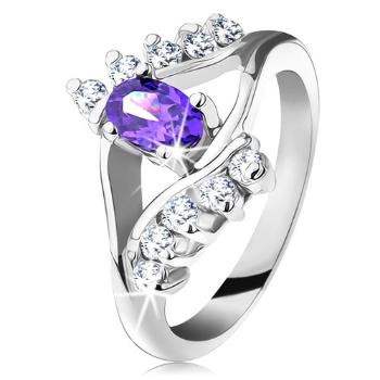 Strieborný 925 prsteň - zásnubný, rozdelené ramená, zirkón, vlnky a trblietavá línia - Veľkosť: 60 mm