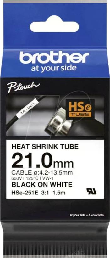Brother HSe-251E Pro Tape, 21 mm x 1.5 m, čierna tlač / biely podklad , originálna páska