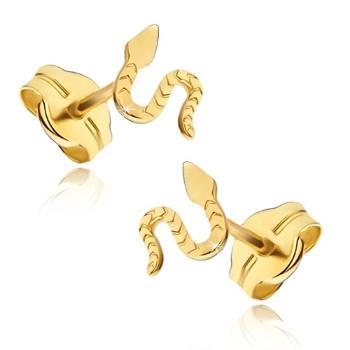Zlaté náušnice v podobe motýľa majú hladké vypuklé telo v tvare slzy a jemne tvarované krídla s dekoratívnymi výrezmi. Elegantný vzhľad dopĺňa praktické puzetové zapínanie, ktoré zachováva jemnosť a kompaktnosť šperku. Precízne spracovaný tvar pôsobí harmonicky a zdôrazňuje ladnosť motýlej siluety.