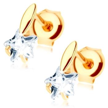 Zlaté náušnice 9K s čírou zirkónovou hviezdou a zlatým zrnom